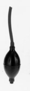 Made of rubber for resistance to most solvents and oils. Single bulb, for pressure only. Consists of 105 mm x 53 mm diameter glossy black rubber bulb with metal valves and 4 inch length of 3/16 inch I.D. black tubing. For use on wash bottles, etc. Capacity is approximately 75 mL.