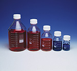 Wide mouth media bottles similar to 10-4295 except with Plastisol safety coating to protect against broken glass. Includes white polypropylene screw cap with wedge-shaped inner sealing ring and polypropylene pour ring. Autoclavable.