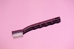 Stiff bristles are 1/2 x 2 x 1/2 inches high. Overall length is 6 5/8 inches. Ideal for cleaning small molds and other hard to reach objects.