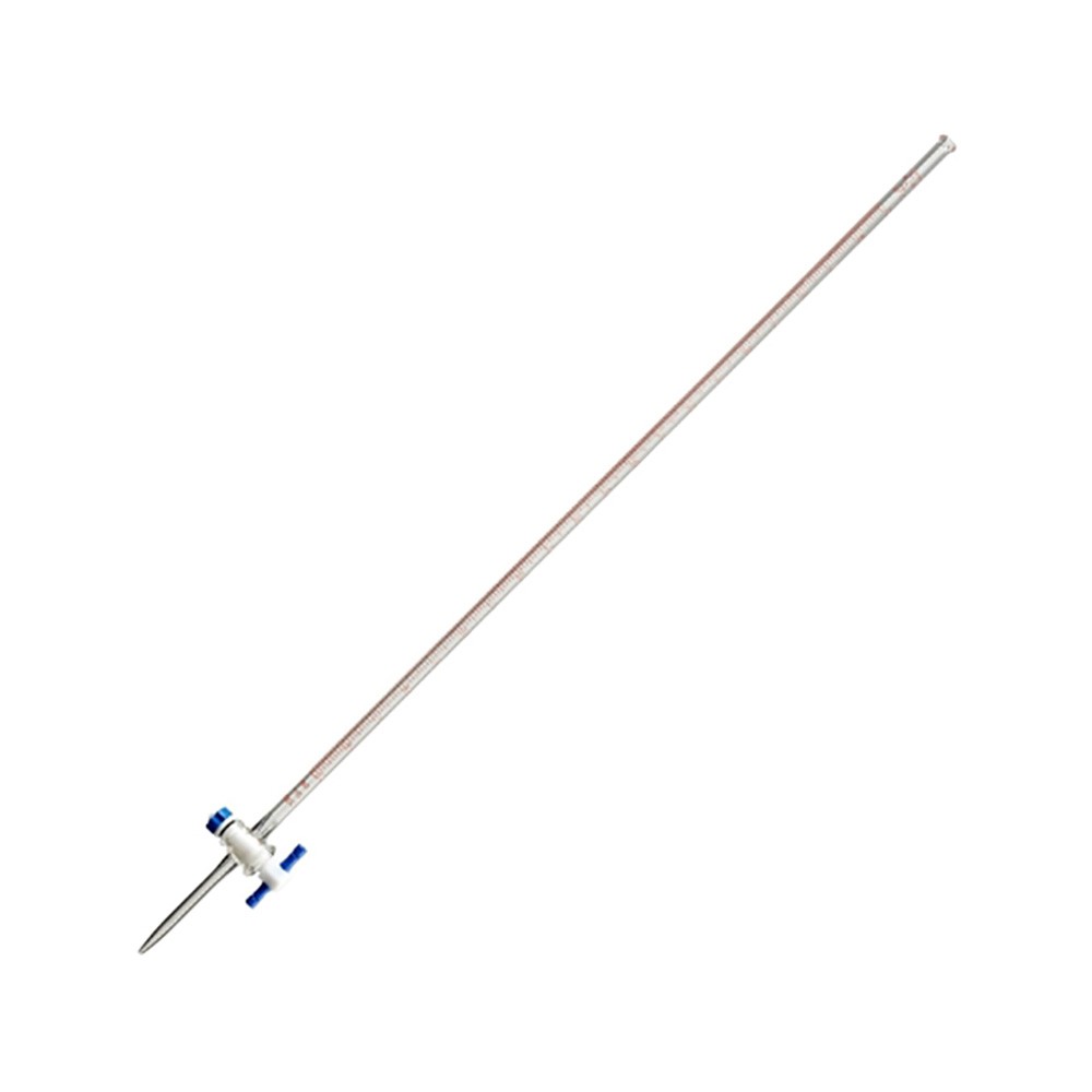 The capacity tolerance on this Class A 10mL PYREX® buret is established by ASTM E-287 and is calibrated in accordance with ASTM E-542. Tips are carefully drawn from accurate bore tubing to insure proper drainage rates. This buret has colored markings, fine, sharp lines and large easy-to-read numbers. The stopcock barrel has a smooth micro-finish to assure leak-resistant performance. Each buret is supplied with a dust cover. All sizes are furnished with a 2mm bore Product Standard PTFE (Polytetrafluorethylene) stopcock plug. For a replacement PTFE stopcock plug only, see No. 7681-2.