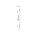 Calibrated to contain. With sharp, permanent red graduation lines on the 15 mL size; permanent brown stain on the 50 mL size. The 15 mL size is graduated (in red) upwards from the tip in 0.1 mL divisions. The 50 mL size is graduated (in brown) upwards from the tip to 10 mL in 0.5 mL divisions, and from 10 to 50 mL in 1 mL divisions. (Kimble 45164)