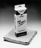 A unique fire fighting aid made of woven fiberglass impregnated with graphite and Teflon® with a textured surface. All edges are serged with fireproof Kevlar® thread. Helps extinguish or contain small lab and fume hood fires as well as Class A and light oil and grease fires. In addition, affords temporary protection in escaping dangerous flames. Asbestos free. The 36 x 40 inch blanket is packaged in a small instant access container which can be wall mounted if desired. An excellent supplement to present fire extinguishing and safety equipment.