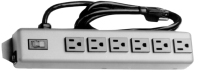 Each strip contains six "U" ground outlets controlled by a master on-off switch with pilot light. Outlets are protected by a circuit breaker. Equipped with three-wire cord and plug. Dimensions are 13 1/4 x 2 3/8 x 1 1/2 inches high. Mounting centers are 10 5/16 inches. For operation on 125 volts, AC, 60 Hz, 15 amps, continuous duty. Blue baked enamel steel case.