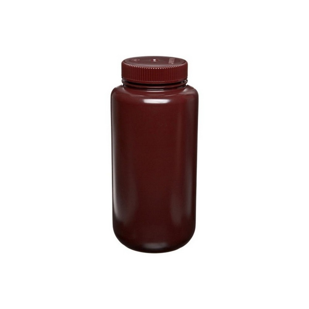 Conduct light-duty, general purpose applications where a heavier bottle is not required with Thermo Scientific™ Nalgene™ Wide-Mouth Amber HDPE Economy Bottles with Closure. These high density polyethylene bottles are lightweight versions of the original Nalgene Amber Lab Quality bottle. Opaque amber color reduces UV light transmissions to protect light-sensitive liquids. Useful for storage, shipping and packaging, they offer excellent chemical resistance to most acids, bases and alcohols.