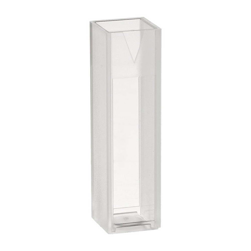 These exceptionally fine quality polystyrene specially designed cuvettes handle up to 4.5ml total volume with minimum filling volume of 2.5mL and a maximum of 4.5mL. Molded arrow indicates the direction of transmission for optimal signal and reproducibility.