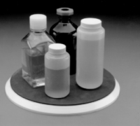 Provides easy access to the far reaches inside incubators and cabinets, avoiding wasted space in rear, clutter up front, and unused materials stored behind frequently used containers. The 11 inch diameter molded polystyrene rotating element is covered with a ¨û inch neoprene pad and is suspended on ball bearings. The surface is highly frictional and will prevent most items from slipping during spin. Overall diameter is 12 inches.